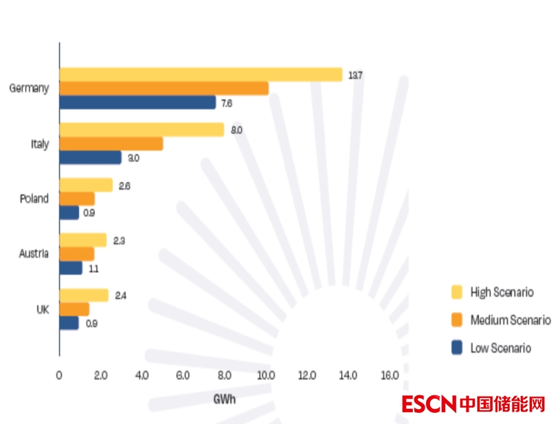 圖3.3 2022~2026年歐洲5大住宅電池儲(chǔ)能市場(chǎng)的增長(zhǎng)