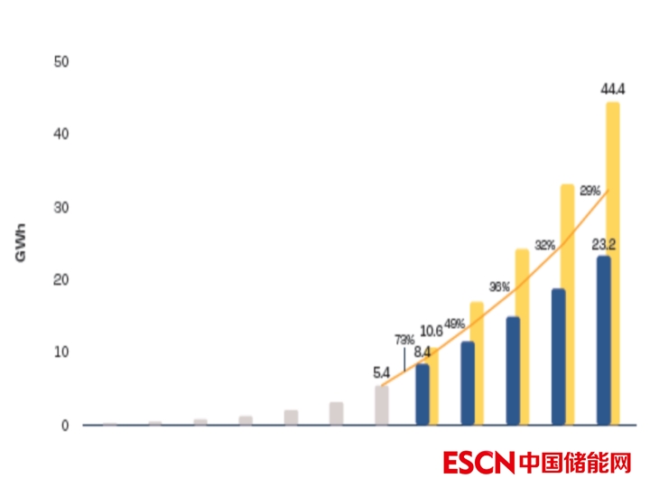 英國(guó)正在按照其市場(chǎng)環(huán)境自力更生。2022年將是一個(gè)改變其游戲規(guī)則的年份,英國(guó)部署的住宅電儲(chǔ)能系統(tǒng)儲(chǔ)能容量約為300MWh,與2021年相比增長(zhǎng)了一倍多。然而,由于缺乏配套方案和智能電表推出緩慢,預(yù)計(jì)未來(lái)幾年將穩(wěn)定在當(dāng)前水平,2023年可能會(huì)有小幅下降,屆時(shí)俄烏沖突對(duì)電價(jià)上漲的影響將有所緩和。