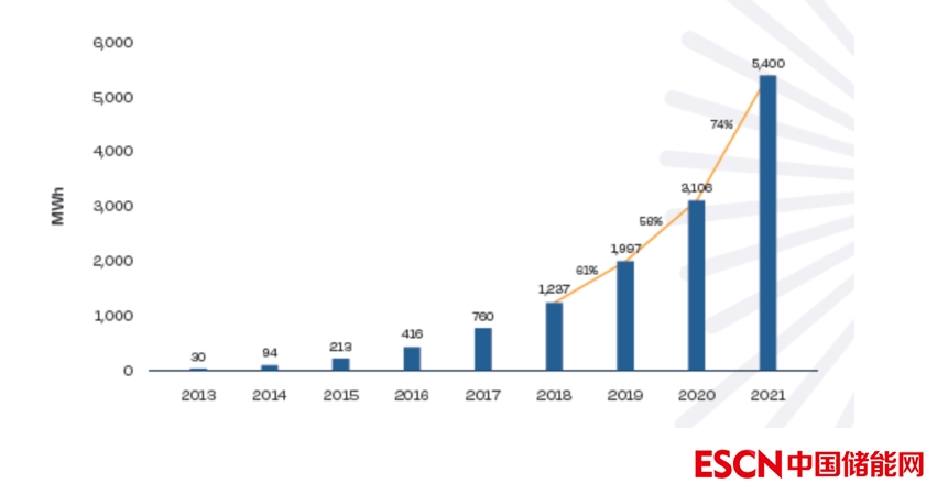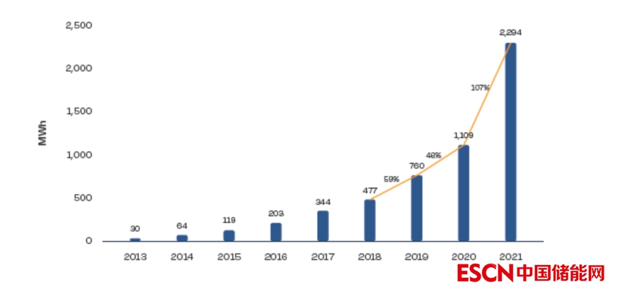 圖2.1 2013-2021年歐洲住宅電池儲(chǔ)能市場(chǎng)發(fā)展?fàn)顩r