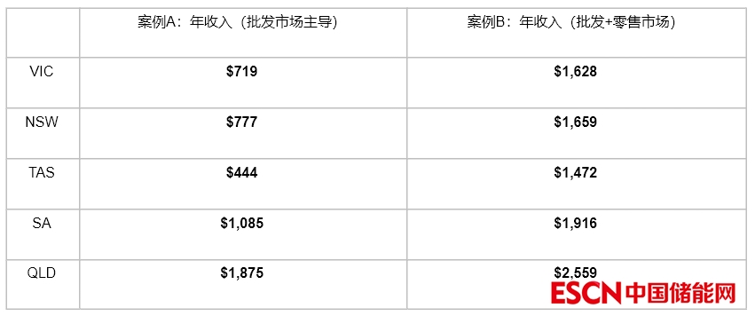下表第一欄顯示了以批發(fā)市場(chǎng)為重點(diǎn)的電池的年收入(案例A),第二欄顯示了以批發(fā)和零售市場(chǎng)為重點(diǎn)的電池的年收入(案例B)。