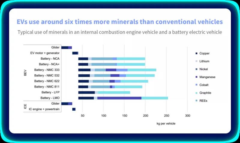 所以,我們回溯5月份IEA寫(xiě)的電池資源約束報(bào)告《The Role of Critical Minerals in Clean Energy Transitions》,詳細(xì)敘述了上端鋰、鎳、鈷還有稀土都制約著電動(dòng)汽車(chē)大發(fā)展。