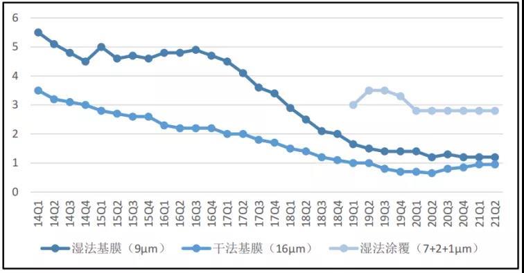 2014年以來的隔膜價格走勢