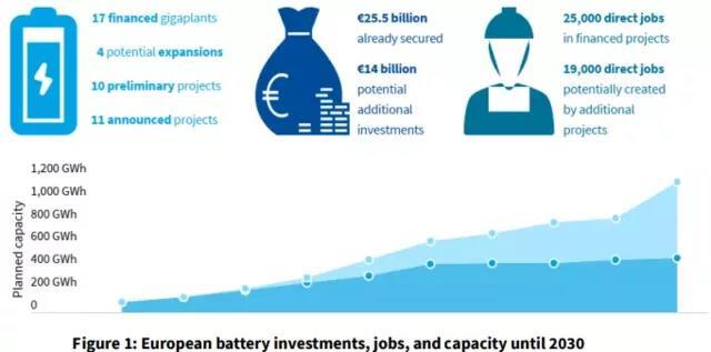 據(jù)報道,歐洲在建或計劃建設(shè)的38座電動汽車電池超級工廠中,有17座是已經(jīng)確定了資金,預(yù)計最高達(dá)到300億美元;另外10座也已確定了部分融資和資金支持,潛在的投資預(yù)計不少于168億美元;余下11座也已經(jīng)宣布,但在選址、計劃產(chǎn)能和投資方面還缺乏堅定的承諾。