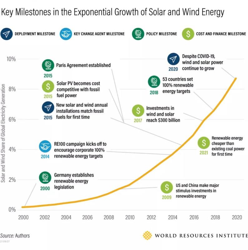 基于可再生能源在過去的指數(shù)增長,我們有理由對其在未來達(dá)到氣候目標(biāo)的速度更加樂觀。本文試圖解讀太陽能和風(fēng)能增長背后的原因、已經(jīng)取得了多大的進(jìn)展,以及需要進(jìn)一步做些什么。