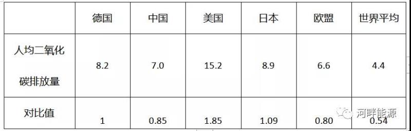 由表2可見,德國的人均二氧化碳排放量比美國、日本低,但高于歐盟平均水平。
