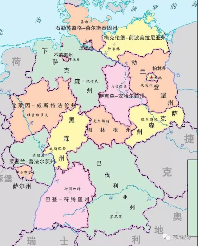 德國主要行政區(qū)及鄰國接壤情況