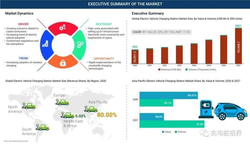 根據(jù)Astute的一份報告,全球電動汽車充電樁(EVCS)市場預計到2027年底將創(chuàng)下930億美元的收入,期間復合年增長率接近20%。