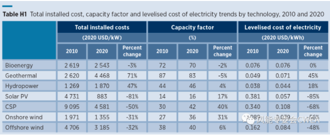 一圖看懂《2020年可再生能源發(fā)電成本》報(bào)告