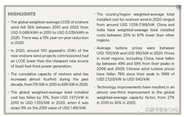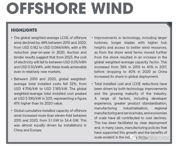有關(guān)可再生能源發(fā)電成本,其他亮點(diǎn)包括: