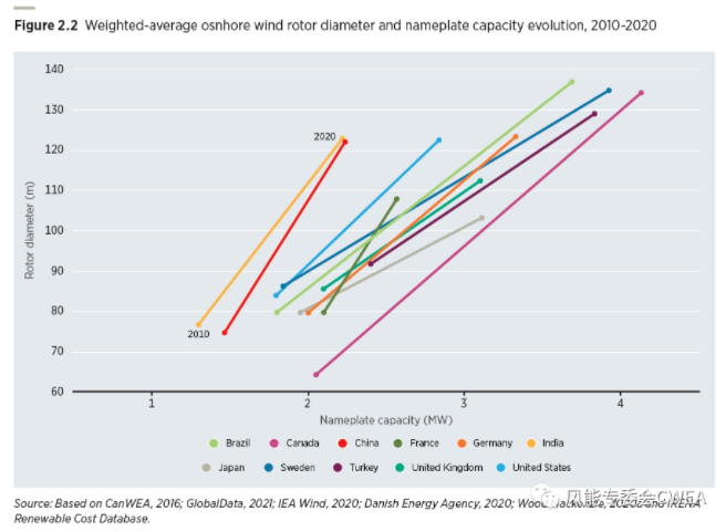 陸上風(fēng)機(jī)風(fēng)輪直徑增長情況