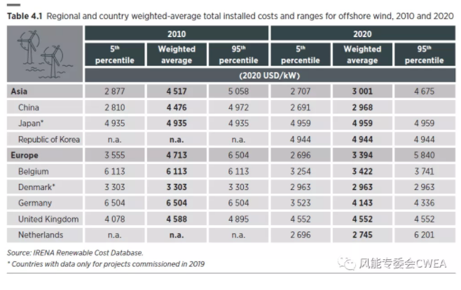 海上風(fēng)電成本下降情況