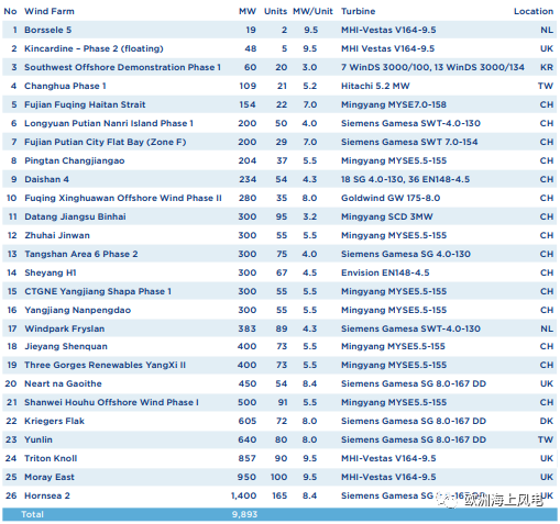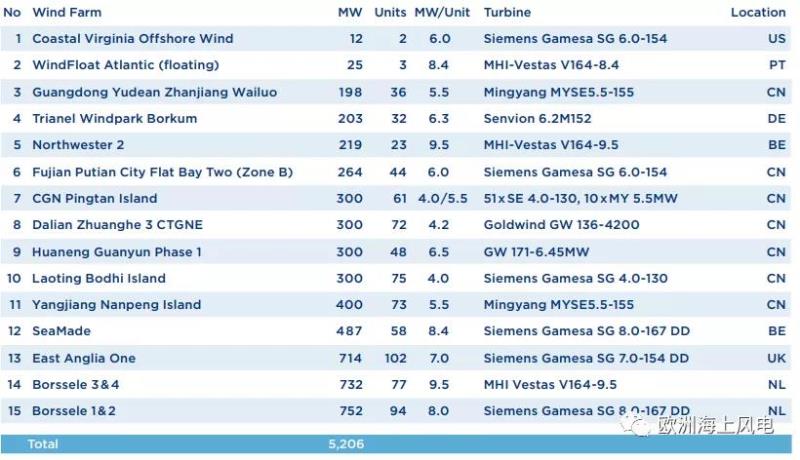 15個新增風(fēng)場主要來自歐洲和中國,其中最大的兩個風(fēng)場都在荷蘭投產(chǎn);