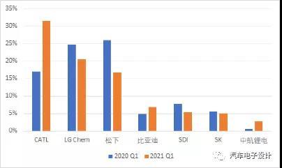 由于季度末的原因,3月全球電動(dòng)汽車電池市場(chǎng)同比增長(zhǎng)2.5倍,裝機(jī)容量為22.1 GWh(對(duì)應(yīng)的國(guó)內(nèi)為9GWh),也就是當(dāng)月從全球占比來(lái)看,國(guó)內(nèi)占全球的用量為40%左右;而Q1占比在48.5%。隨著歐洲和美國(guó)的需求上來(lái),爭(zhēng)奪海外市場(chǎng)變得更重要了。