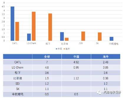 圖1 中國(guó)和國(guó)外的動(dòng)力電池裝機(jī)