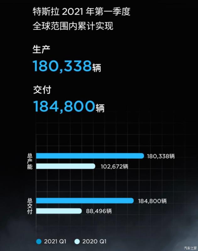 日前,特斯拉官方公布了該品牌2021年第一季度產能及交付數(shù)據,其累計生產180338輛純電動車,交付184800輛。相比2020年第一季度,該品牌純電動車的生產量增加了77666輛,交付量增加了96304輛。此外,據官方表示,新款Model S和Model X全新生產設備已于第一季度完全安裝并通過測試,現(xiàn)已進入批量生產的初期階段。