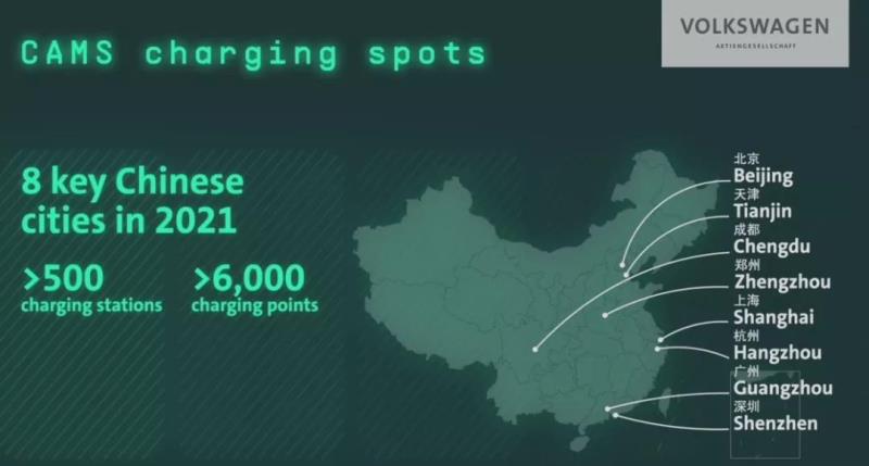 大眾集團(tuán)認(rèn)為,充電便利性和里程焦慮是當(dāng)前阻礙中國(guó)客戶購(gòu)買(mǎi)電動(dòng)汽車(chē)的兩個(gè)主要因素。為此,大眾集團(tuán)決定2021年借助合資公司開(kāi)邁斯(CAMS),在中國(guó)布局超過(guò)500個(gè)充電站和6000多個(gè)充電樁,全面覆蓋北上廣深,以及天津、成都、鄭州、杭州這8個(gè)主要城市。