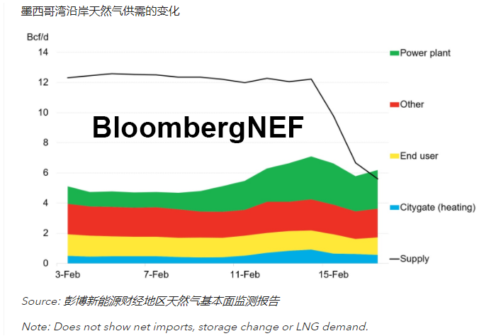 盡管地區(qū)天然氣產(chǎn)量一夜之間下降了60億立方英尺/天,腰斬50%,但市場有效地將燃料供應(yīng)轉(zhuǎn)移到需求中心。進(jìn)入LNG終端的進(jìn)料氣需求減少50%,轉(zhuǎn)而用作供暖和發(fā)電勇氣。與30天滾動平均值相比,2月15日-21日一周內(nèi)供暖用氣平均增長40%,發(fā)電用氣增長90%。