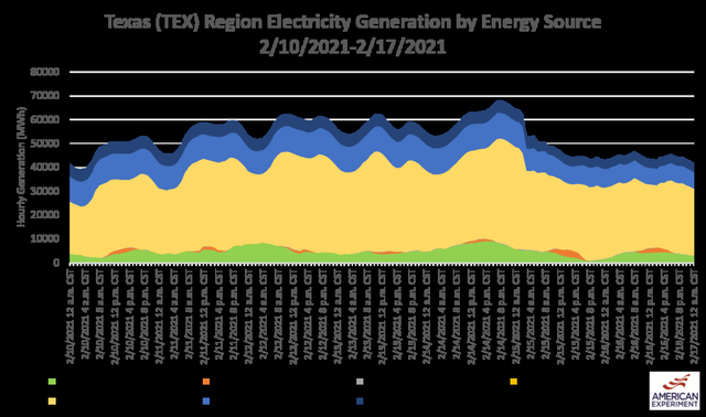 根據(jù)評級,煤炭和天然氣的可靠性表現(xiàn)不如核電,但其評級均過了C,不如核電,但遠超風能。最重要的是,得州天然氣發(fā)電產(chǎn)能超過77千兆瓦(GW),煤炭發(fā)電產(chǎn)能近20千兆瓦(GW)。因此,C級表現(xiàn)力依然讓這兩者成了危機期間最大的電力來源。