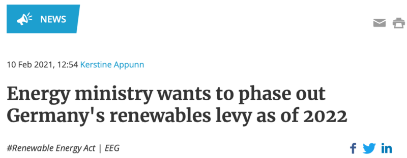 2021年版的《可再生能源法》(EEG)啟動(dòng)了向可再生能源生產(chǎn)商支付上網(wǎng)電價(jià)的法律,該電價(jià)部分由EEG附加費(fèi)支付。EEG附加費(fèi)今年上限為6.5美分,明年上限為6美分,預(yù)計(jì)到2027年取消。此外,為了進(jìn)一步減輕電力消費(fèi)者的經(jīng)濟(jì)負(fù)擔(dān),自2021年1月起,德國(guó)要求取暖和運(yùn)輸?shù)哪茉聪M(fèi)者支付二氧化碳價(jià)格。