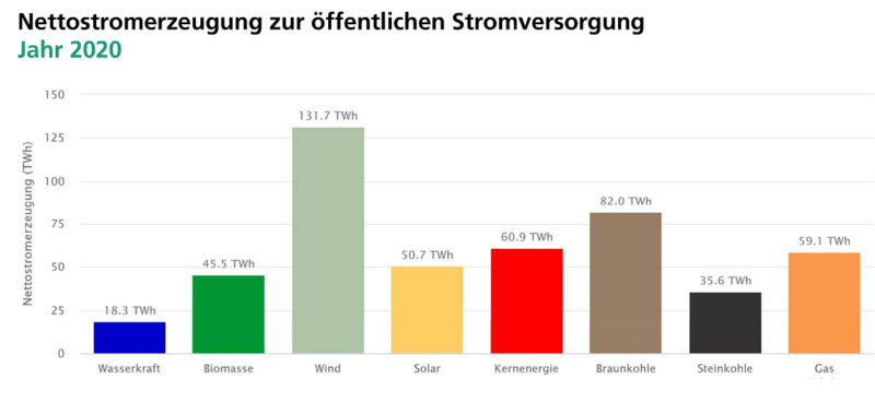 數(shù)據(jù)顯示,2020年風(fēng)力發(fā)電廠(尤其是陸上發(fā)電廠)為德國2020年的電力市場做出了最大貢獻(xiàn),其中陸上和海上風(fēng)力發(fā)電合計占到27.4%的份額;光伏發(fā)電占9.7%;其余的12.2%由生物質(zhì)能,水力發(fā)電和其他可再生能源構(gòu)成的。