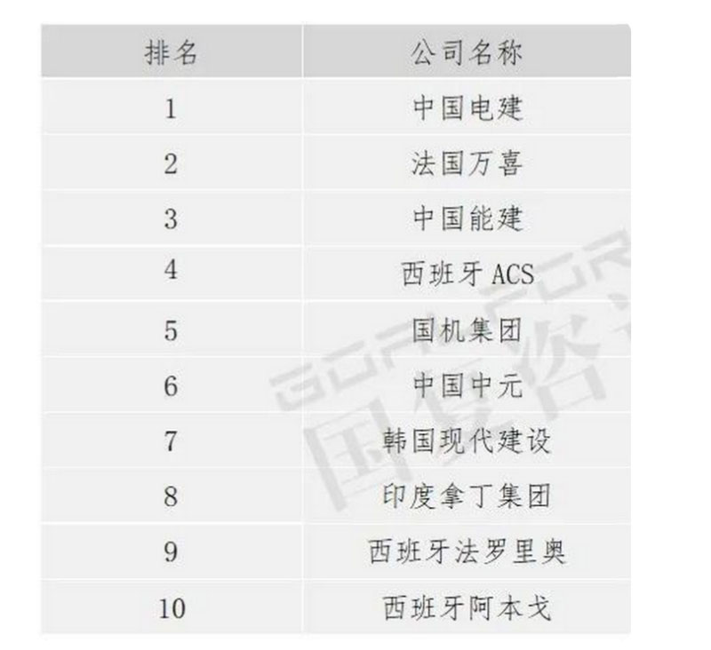2019年,全球十大國際電力承包商榜單如下: