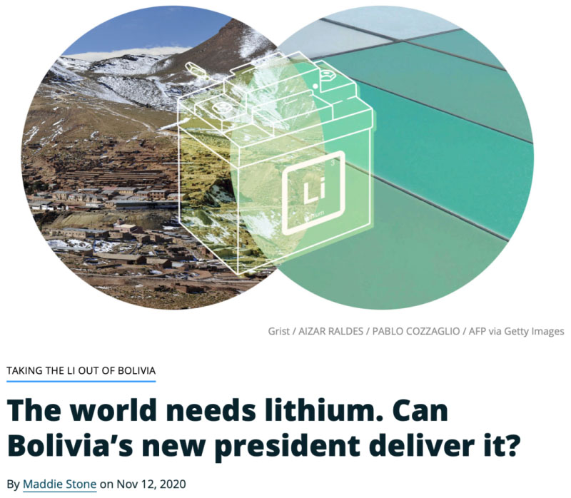 Grist網(wǎng)站發(fā)表署名Maddie Stone的文章,題目是:The world needs lithium. Can Bolivia’s new president deliver it?(世界需要鋰,玻利維亞的新總統(tǒng)能保障供應嗎?)。