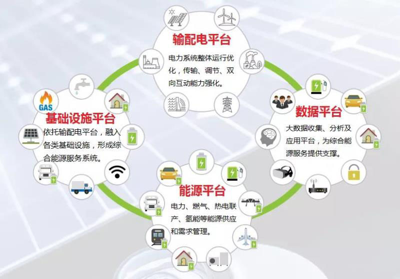 能源平臺融合電力、燃氣、熱電聯(lián)產、氫能、蓄電池、基于電動汽車的移動儲能等多種能源設施,實現(xiàn)多能互補、合理共享,是以電為中心的輸配電平臺在其他能源領域的延伸。
