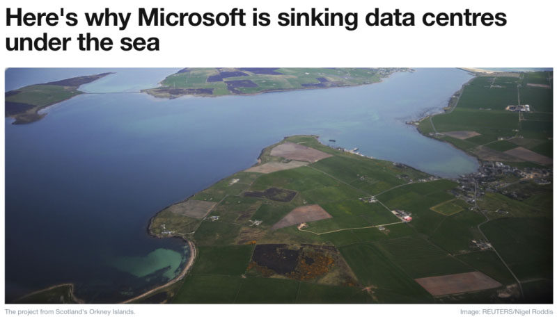 微軟公司在蘇格蘭奧克尼群島海岸進(jìn)行“納蒂克項(xiàng)目”(ProjectNatick)實(shí)驗(yàn),證明集裝箱大小的水下數(shù)據(jù)中心的可靠性是陸地?cái)?shù)據(jù)中心的8倍,而且奧克尼島地區(qū)由風(fēng)能和太陽能提供的100%可再生電網(wǎng)覆蓋。這一成果將塑造未來的數(shù)據(jù)中心運(yùn)行模式,同時(shí)保持低能耗和低運(yùn)營成本。