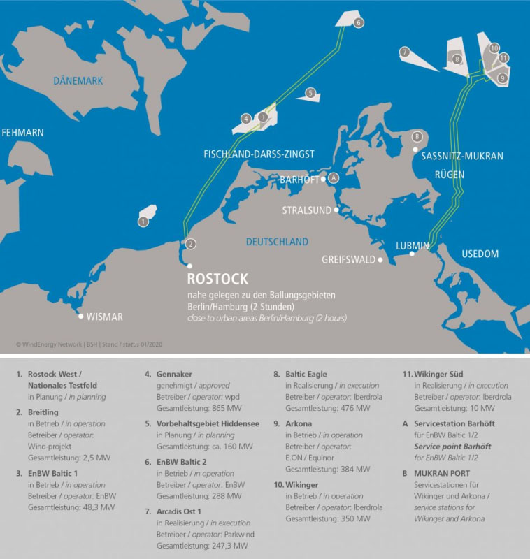 德國在波羅的海的海上風(fēng)電計(jì)劃,EnBW Baltic 1為首個(gè)風(fēng)電場,Arkona容量最大