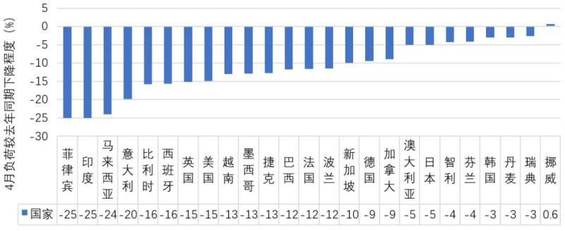圖1 主要國(guó)家用電負(fù)荷受疫情影響情況