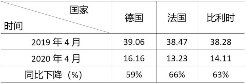 一是總體用電需求快速下降,發(fā)電供給相對(duì)過剩,各國(guó)交易電價(jià)普遍下降。國(guó)際能源署預(yù)計(jì)2020年全球能源需求下降6%,是2008年全球金融危機(jī)時(shí)能源需求量下降的7倍;疫情期間全球電力消費(fèi)下降20%,預(yù)計(jì)全年全球用電需求將下降5%,是1930年代大蕭條以來的最大降幅。德國(guó)、法國(guó)、比利時(shí)4月電力批發(fā)市場(chǎng)日前平均交易價(jià)格較同期下降超過50%,8天出現(xiàn)負(fù)電價(jià),最低跌至-76.29歐元/兆瓦時(shí)(如表1)。