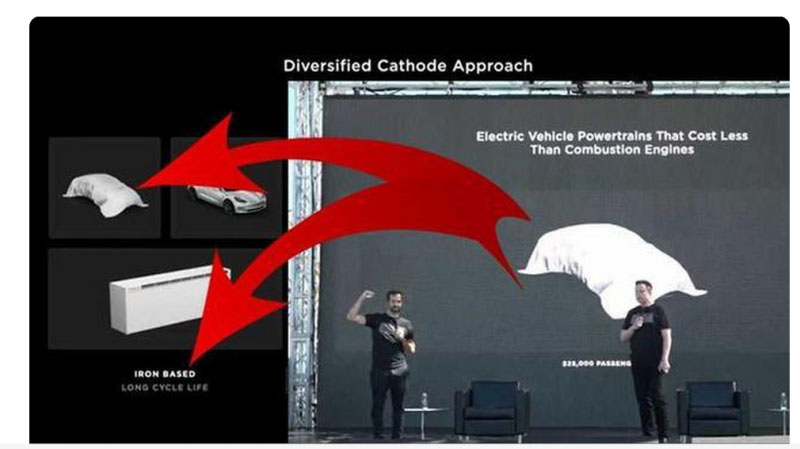 特斯拉電池日上,特斯拉公布了將自行生產(chǎn)4680電池的消息,當(dāng)時(shí)特斯拉首席執(zhí)行官埃隆·馬斯克(Elon Musk)還談到了25,000美元低價(jià)電動(dòng)新車,很多人想當(dāng)然地認(rèn)為這款新車將配備全新4680電池,但事后仔細(xì)查看特斯拉活動(dòng)時(shí)播放的幻燈片發(fā)現(xiàn),事實(shí)并不是這樣。特斯拉自產(chǎn)的4680電池至少在最初階段只會(huì)應(yīng)用到大批量生產(chǎn)的新車,比如Cybertruck電動(dòng)皮卡和Semi電動(dòng)卡車,現(xiàn)有的特斯拉電動(dòng)車型仍將保留2170電池,比如Model X/Y,而25,000美元的低價(jià)新車則會(huì)配備磷酸鐵鋰電池(LFP)。