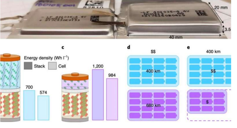 采用高能量密度電池,可以制造出更多類型的電動(dòng)汽車,包括飛行車輛。根據(jù)以往研究預(yù)測,為了支持飛行車輛的起飛和降落,電池的能量密度大約需要達(dá)到400 Wh/kg,比大多數(shù)現(xiàn)有鋰離子電池的能量密度高出約30%。除了可以為飛行車輛提供動(dòng)力,使用高能量電池,還可以增加電動(dòng)汽車單次充電后的行駛里程,而且能夠降低電動(dòng)汽車的整體制造成本。