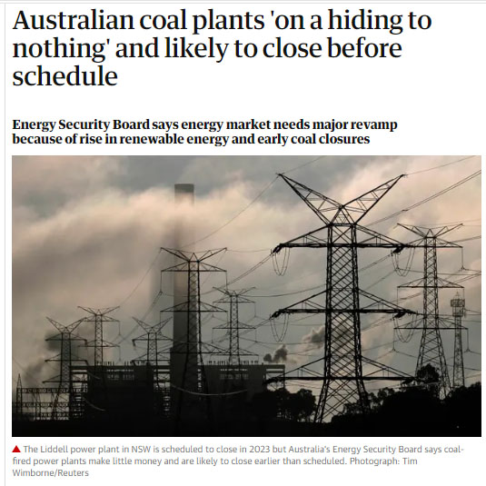 澳大利亞能源安全委員會(huì)表示,由于大量廉價(jià)的可再生能源進(jìn)入電網(wǎng),澳大利亞老舊的燃煤發(fā)電廠難以盈利,可能在需要提前退役。