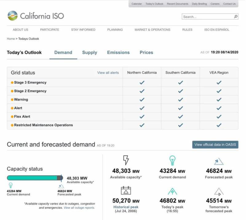 美國(guó)加州獨(dú)立電力系統(tǒng)運(yùn)營(yíng)商在上周五下午6:30左右宣布進(jìn)入第三級(jí)緊急警報(bào),這是自2001年加州電力危機(jī)以來(lái)的首次。電網(wǎng)管理人員最初“削減”了大約500兆瓦的電力供應(yīng),造成5萬(wàn)至7.5萬(wàn)戶家庭停電。根據(jù)公司的停電日志,到晚上8點(diǎn)就有24萬(wàn)人因全州緊急情況而斷電,停電一般會(huì)持續(xù)一個(gè)小時(shí)左右。