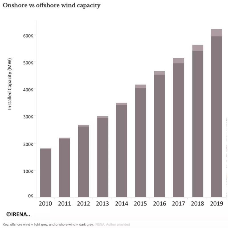 (圖:海上風(fēng)電=淺灰色,陸上風(fēng)電=深灰色)
