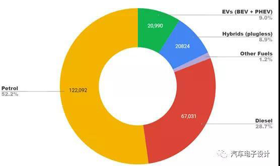 圖3 法國(guó)6月銷售的乘用車動(dòng)力總成分類