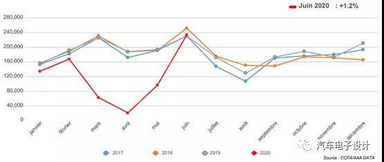 法國(guó)行業(yè)組織CCFA統(tǒng)計(jì),6月法國(guó)新車注冊(cè)量為233818輛,同比增長(zhǎng)1.2%。疫情封鎖解除后,法國(guó)汽車的銷售開(kāi)始重回軌道了。1-6月,法國(guó)累計(jì)新車注冊(cè)數(shù)依然下降了39%。