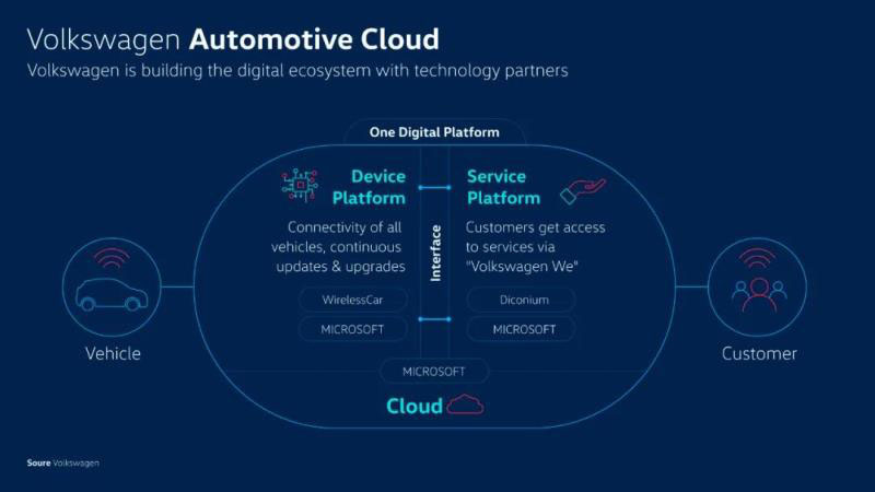 除了向電動化方向轉(zhuǎn)型,數(shù)字化也是大眾汽車未來發(fā)展的重點(diǎn)。大眾成立了專門的Car.Software部門,與微軟合作開發(fā)vw.OS汽車操作系統(tǒng),將過去的硬件定義汽車的路線調(diào)整為軟件定義汽車。
