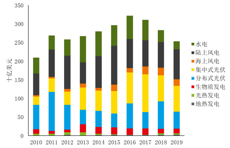 2019年,全球可再生電力投資2534億美元,新增裝機(jī)176GW。