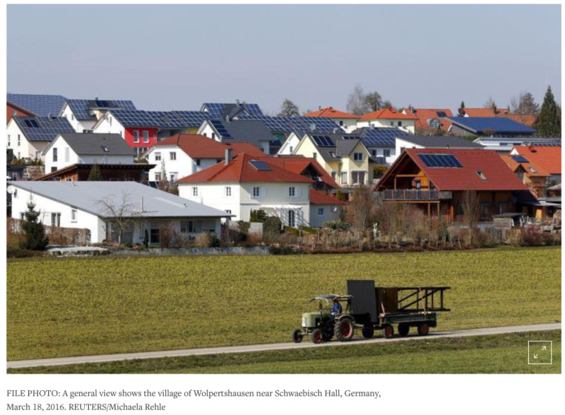 德國太陽能裝機的上限和風(fēng)電與房屋距離的限制影響了投資者對可再生能源發(fā)展的信心,因為太陽能裝機的上限正在迅速接近,同時陸上風(fēng)力發(fā)電的潛力也急劇下降。聯(lián)合國支持的一份全球報告顯示,德國太陽能投資去年增長15%,至34億美元左右,但風(fēng)力發(fā)電投資下降68%,至10億美元。