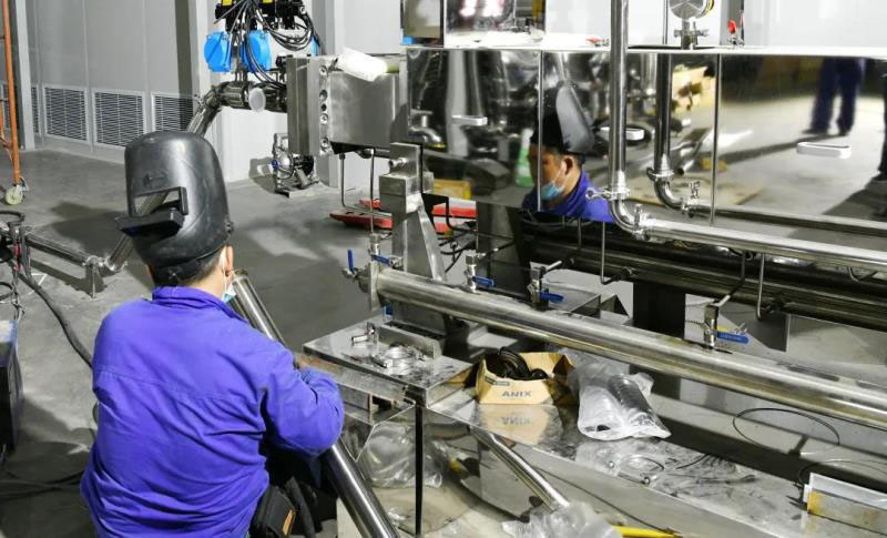 受疫情影響,現(xiàn)場施工進度稍微有些滯后,但總體影響不大。走進大門,廠房還在施工階段,地面上有灰塵,但依然掩蓋不住其锃亮本色,遠(yuǎn)遠(yuǎn)望去有鏡面效果。