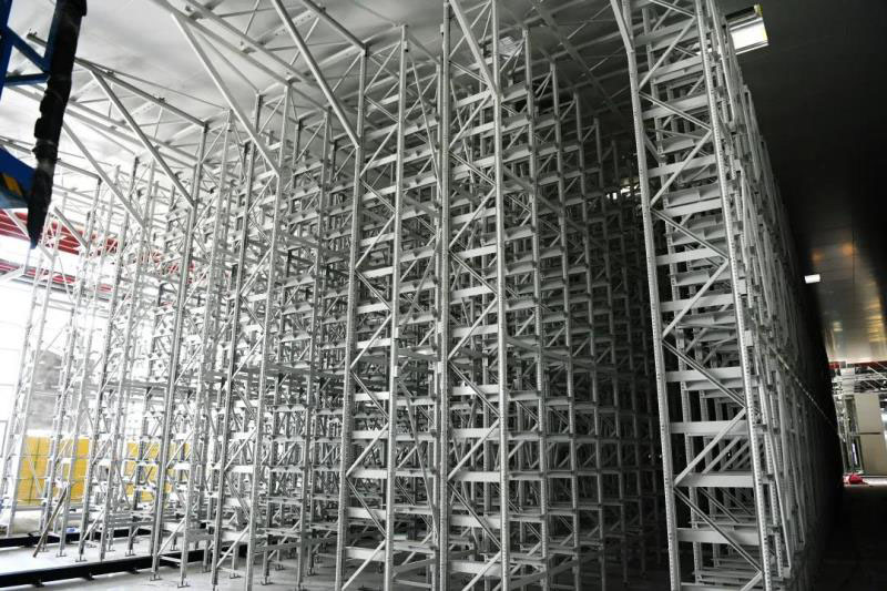 在現(xiàn)場,建設(shè)中的電池貨架頂天立地,似士兵般挺立。這里智能物流設(shè)備的應(yīng)用,將大幅提升倉儲效率,降低人工成本,提升南通工廠智能化、數(shù)字化整體建設(shè)水平。