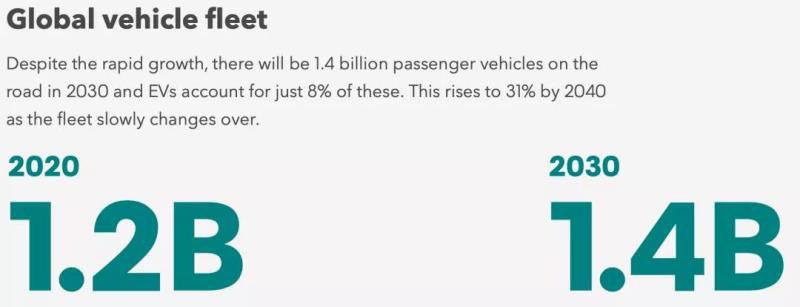 預(yù)計(jì)2020年全球乘用車(chē)存量為12億輛,2030年達(dá)14億輛。