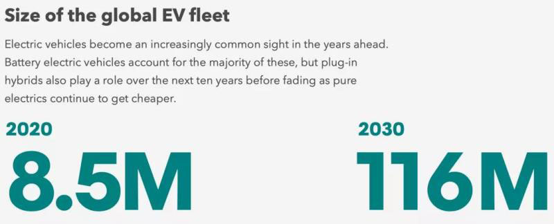 預(yù)計(jì)2020年全球電動(dòng)車(chē)存量850萬(wàn)輛,2030年達(dá)1.16億輛。