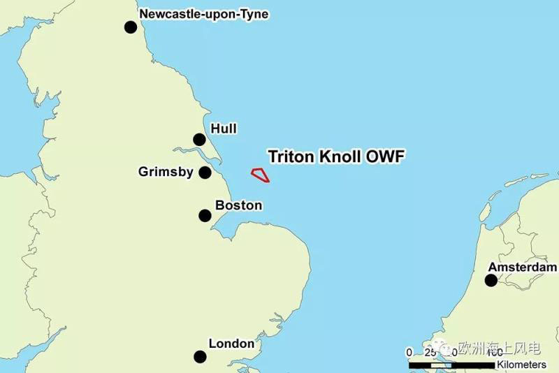 Triton Knoll項目位于英國北海,總裝機容量860MW,安裝90臺三菱維斯塔斯9.5MW風機,計劃于2021年并網(wǎng)。Innogy持有41%股份,J-Power持有25%,Kansai Electric Power持有16%。Triton Knoll項目在英國2017年海上風電競標中以74.75英鎊/MWh的電價中標,項目總投資約23億英鎊。
