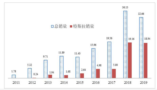 美國(guó)歷年BEV和PHEV總銷量及特斯拉銷量(萬(wàn)輛)