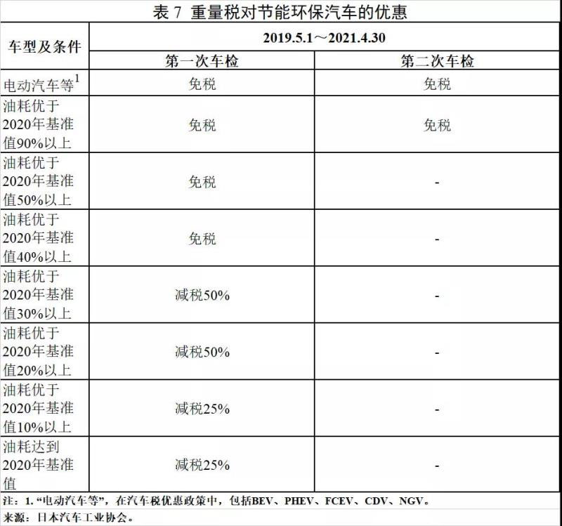 在汽車(chē)保有環(huán)節(jié)對(duì)節(jié)能環(huán)保汽車(chē)給予優(yōu)惠。汽車(chē)稅針對(duì)排量在0.66L以上的汽車(chē)征收,乘用車(chē)每年按照排量征稅,共分為10個(gè)區(qū)間,排量越大,征稅越多;2019年10月1日起,由于消費(fèi)稅率的上調(diào),為降低消費(fèi)者稅負(fù),日本下調(diào)汽車(chē)稅稅率,調(diào)整后乘用車(chē)稅額為25000—110000日元/年(約合1750—7700元人民幣/年),其中小排量乘用車(chē)稅率下調(diào)力度更大。微型汽稅是定額稅,針對(duì)0.66L及以下的汽車(chē)征收,私人微型乘用車(chē)每年稅額為10800日元(約合756元人民幣)。重量稅依據(jù)重量征稅,私家乘用車(chē)稅率約為每0.5噸4100日元/年(約合287元人民幣/年),微型車(chē)稅率為定額3300日元/年(約合231元人民幣/年);車(chē)齡達(dá)到13年的車(chē)輛需繳納更高的重量稅,以加速老舊車(chē)的淘汰。為支持汽車(chē)向節(jié)能環(huán)保發(fā)展,包括下一代汽車(chē)在內(nèi)的符合節(jié)能環(huán)保要求的汽車(chē)均可享受不同程度的汽車(chē)稅、微型車(chē)稅、重量稅減免措施。