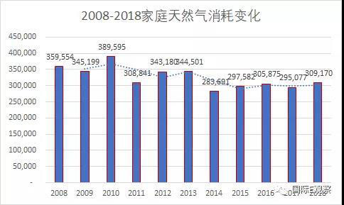 從上圖可以看出英國(guó)的天然氣消耗呈下降但趨穩(wěn)趨勢(shì)。英國(guó)天然氣除了炊事,還多用于家庭供暖和熱水。英國(guó)家庭一般都是獨(dú)門(mén)獨(dú)棟建筑,供暖多為自供暖系統(tǒng)。冬季供暖能源消耗較大。