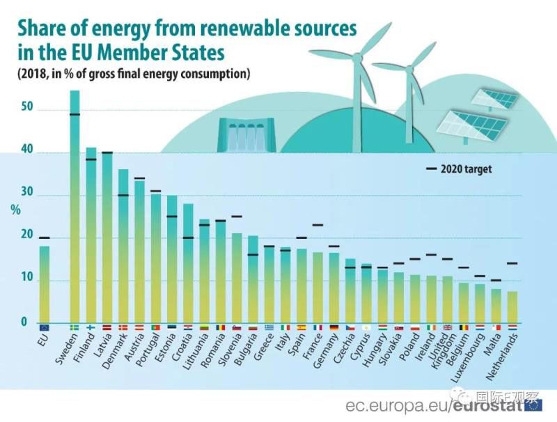 近年來(lái),歐盟關(guān)于促進(jìn)可再生能源的立法已取得重大進(jìn)展。2009年,歐盟領(lǐng)導(dǎo)人設(shè)定了到2020年歐盟能源消耗中20%來(lái)自可再生能源的目標(biāo)。到2018年,商定到2030年歐盟能源消耗中32%來(lái)自可再生能源的目標(biāo)。關(guān)于2030年后時(shí)期的未來(lái)政策框架正在討論中。